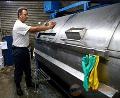 工業(yè)洗衣機內(nèi)筒一般都采用鏡面不銹鋼制造,并且工作時轉(zhuǎn)速很高,所以在每次洗滌作業(yè)前后都要確保完全清空內(nèi)桶,防止有金屬異物損傷內(nèi)筒表面,加劇布草磨損。